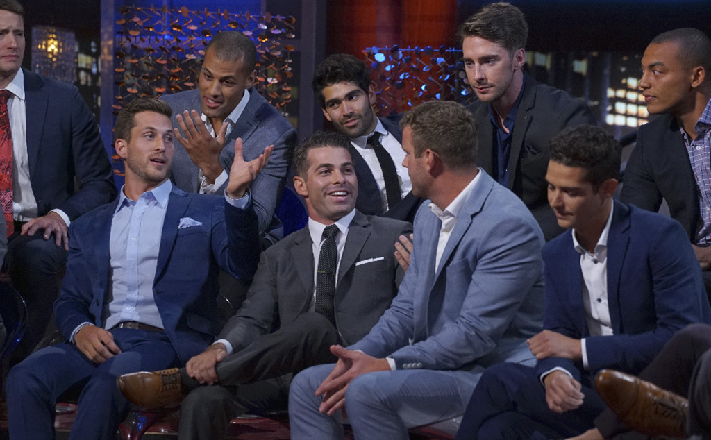 The Men Tell All begins with a standard intro by Chris Harrison and a sneak peak at Bachelor in Paradise. A show that looks heavily focused on Chad. Harrison introduces all the men in attendance and I swear a few of them never appeared on the show. Before the guys get to talk, a clip is played recapping the season and the relationships in the house. Chad drama and picking on Derek is highlighted. Alex disses Derek, but the tables turn and everyone starts going at Alex. Ali defends Chad. Ali has officially said more than he has all season long. Before the commercial break another planted Chad vignette airs of him eating meat in a trailer.