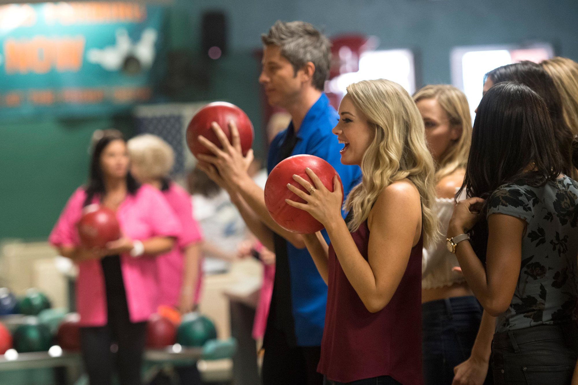 What better and cheaper place to take a group of women on a date? A bowling alley. Keeping the budget under control. The women are split into two teams with the winning team getting a date with Arie. As if that’s an incentive. Team blue demolishes team pink. Krystal’s team wins and she focuses on keeping the spirits up high.
